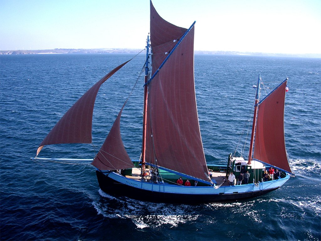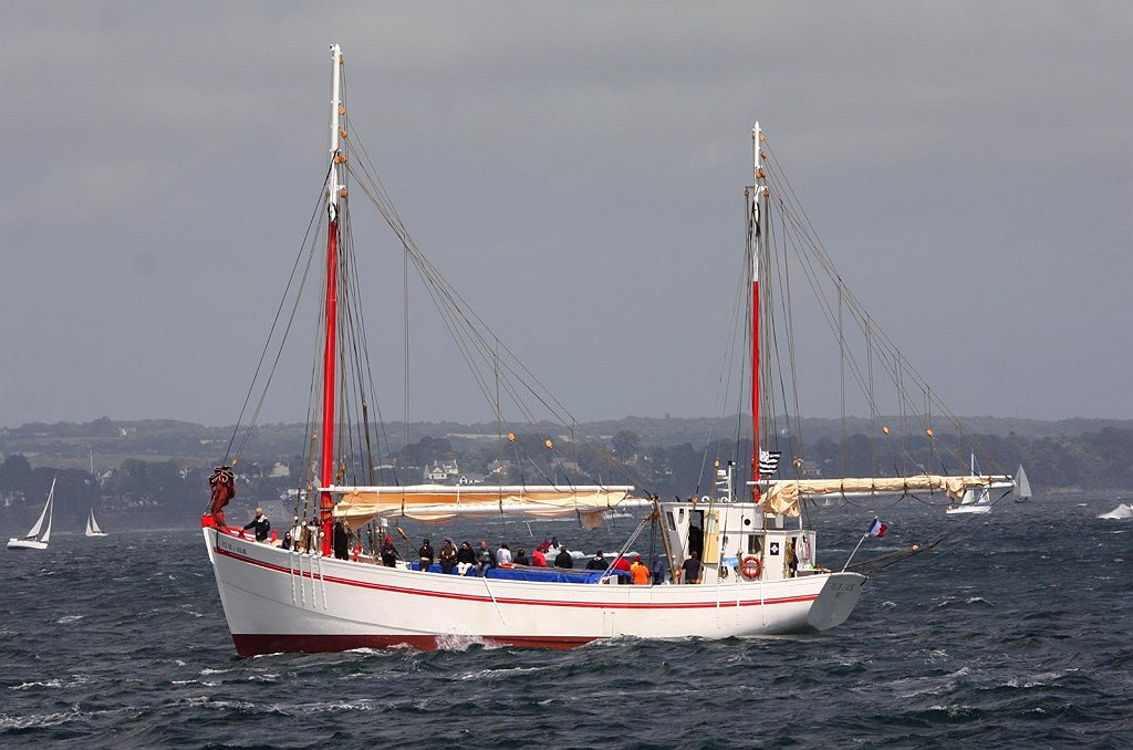 Dandy-rigged coasting vessel built in 1945 by Keraudren Shipyard of Camaret (France).
