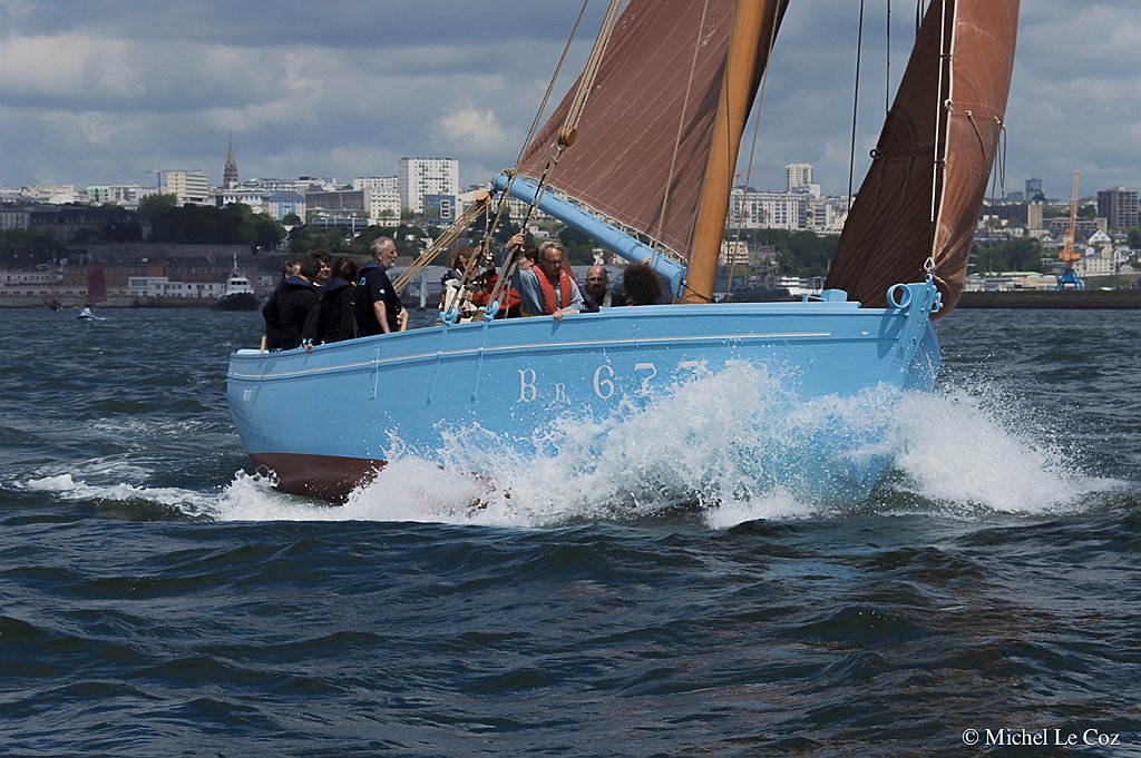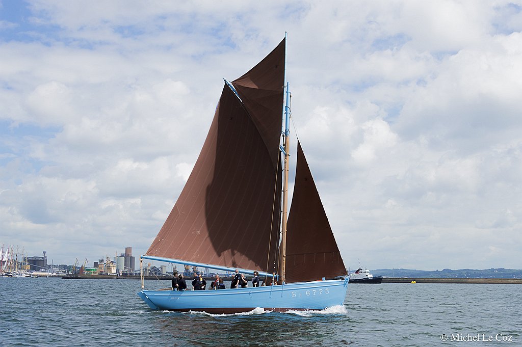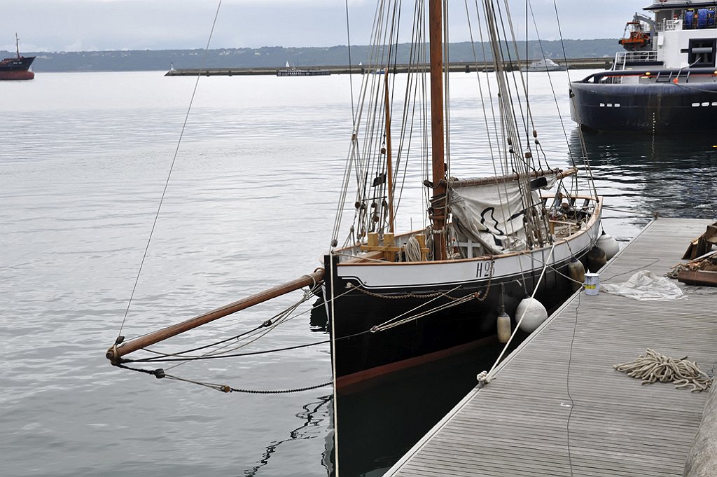Sloop-rigged scallop boat built for Brest coastal waters in 1948 by the Victor Belbeoc’h Shipyard of Le Fret (France).