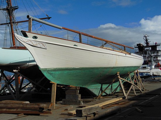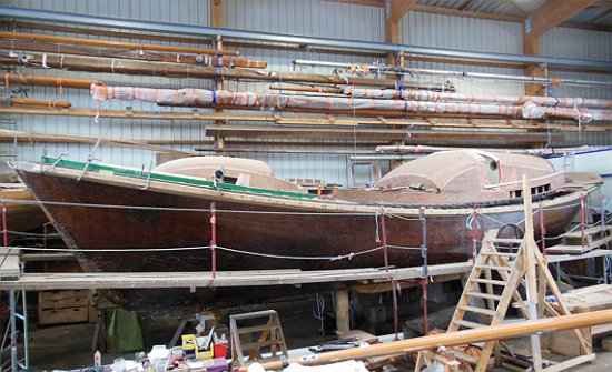 Le savoir-faire du chantier du Guip dans la rénovation des yachts classiques est désormais reconnu bien au-delà des limites de la Bretagne. Deux voiliers, participant au prestigieux circuit des régates en Méditerranée, sont ainsi arrivés quai Malbert. Le premier, Tigris, est un cotre aurique de 16 mètres. Construit en 1899 au chantier Mac Allister en Ecosse, ce plan Mylne régatait sur la rivière Clyde dans une classe appelée « 35 ff. Clyde class». Les charpentiers du Guip vont déposer et changer la quille bois et restructurer la tenue des fonds. La remise à l’eau est prévue pour l’été prochain. Le deuxième, Bounty, est un élégant ketch de 17,35 mètres, conçu par Francis Herreshoff et construit aux Etats-Unis en 1934. Il va bénéficier d’une restauration globale minutieuse avec, notamment, le remplacement des préceintes (premier bordé du haut), d’une grande partie des membrures ainsi que la restauration du pont en teck et des roufs. Un gros chantier qui devrait s’effectuer à partir de 2015, la remise à l’eau de Bounty étant prévue pour les fêtes maritimes de Brest 2016.