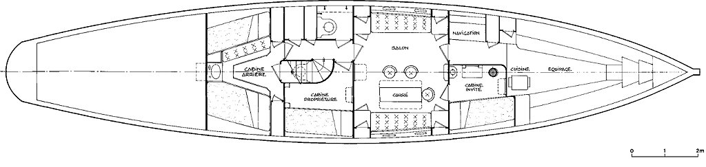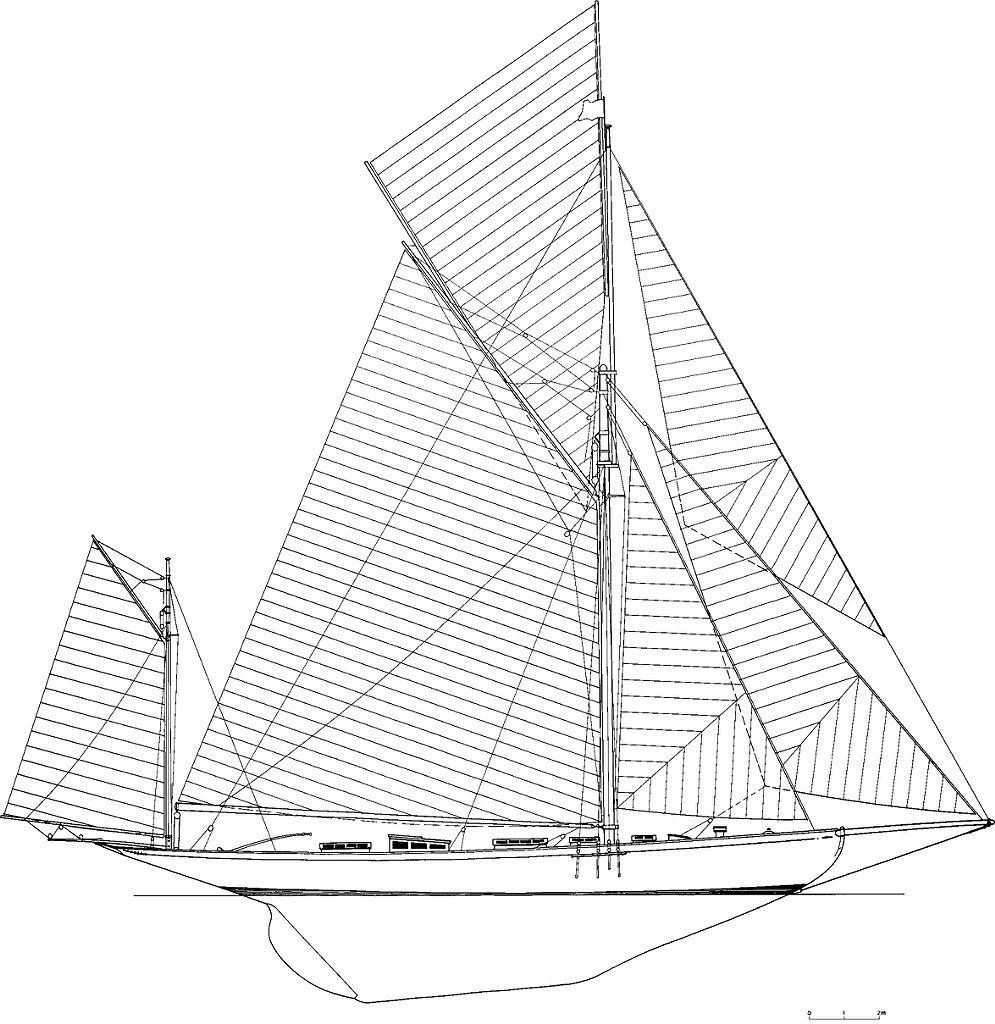 (longueur: 20,43m, largeur: 4,20m, tirant d’eau: 2,92m, voilure: 187 m²).