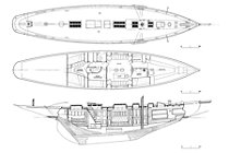 (longueur: 20,43m, largeur: 4,20m, tirant d’eau: 2,92m, voilure: 187 m²).