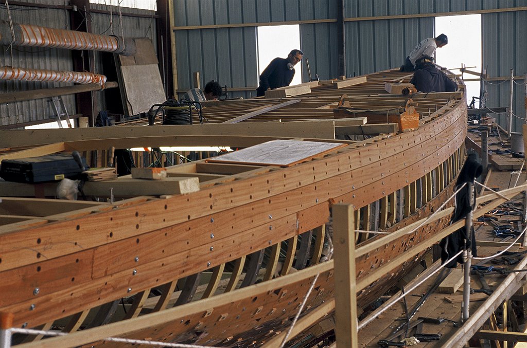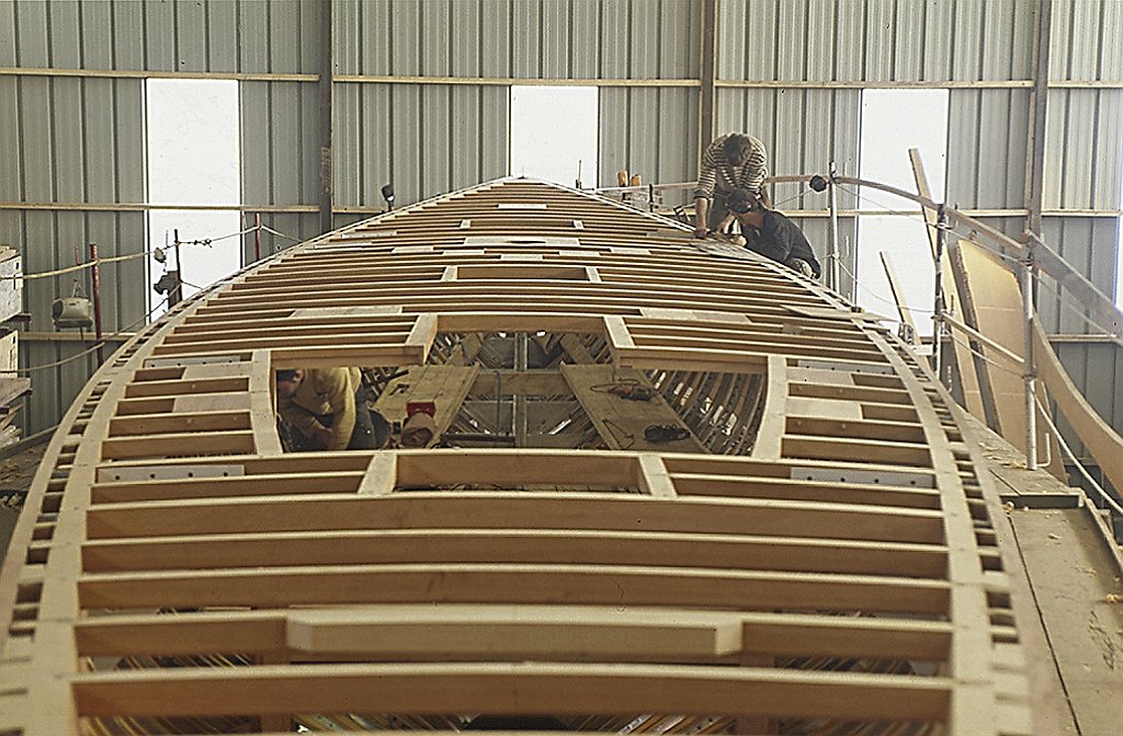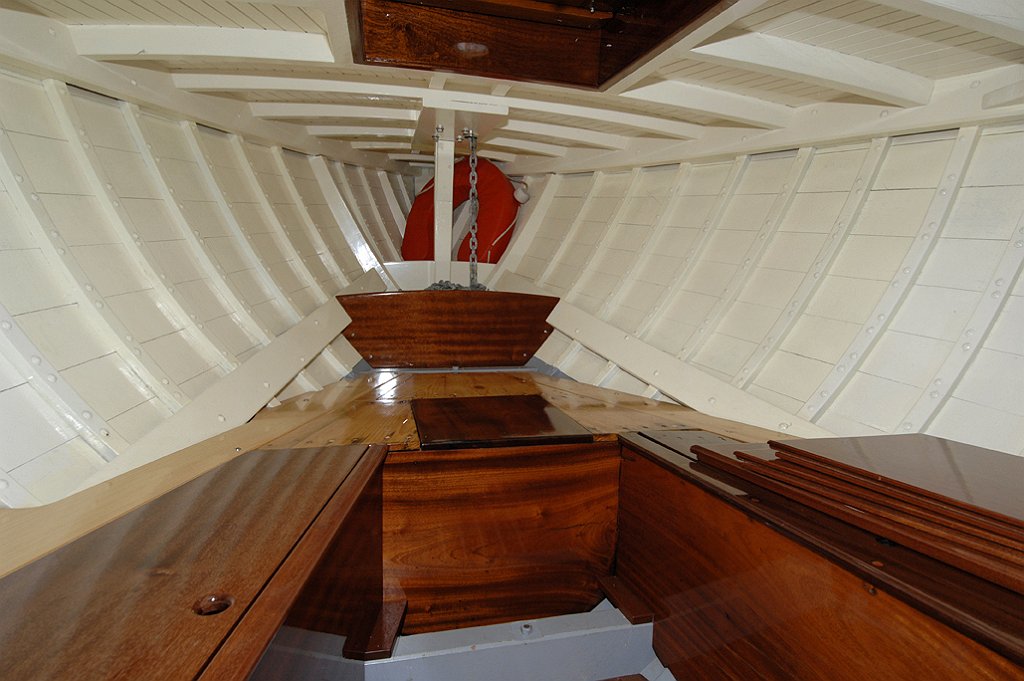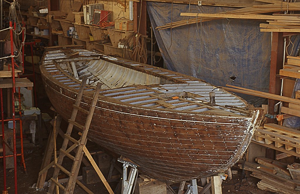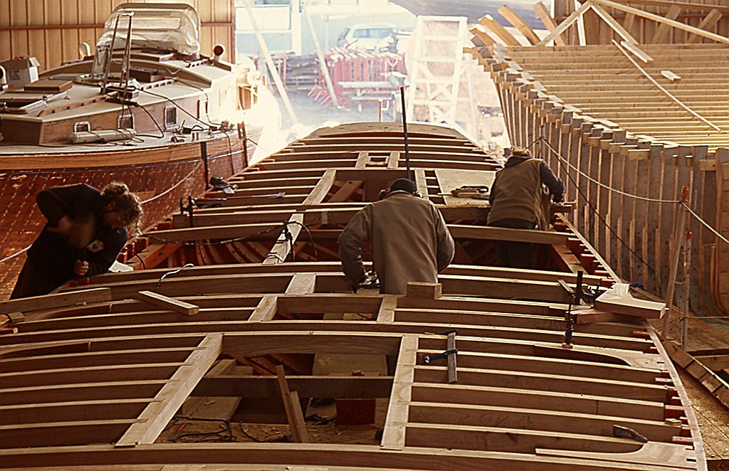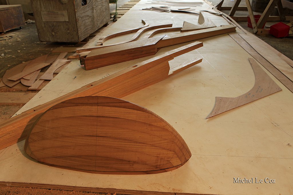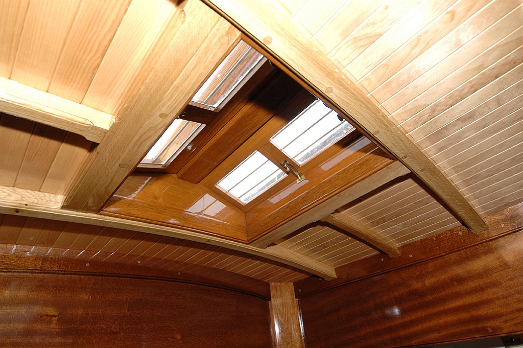 Construction en bois classique. Membrures métalliques cintrées et rivetées à chaud.
