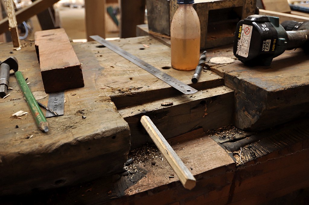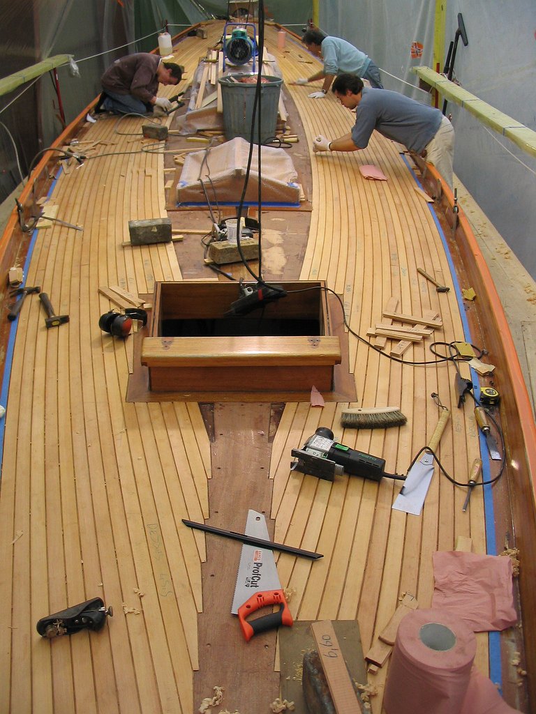 Réfection du pont latté par le chantier du Guip de Brest en 2005.
